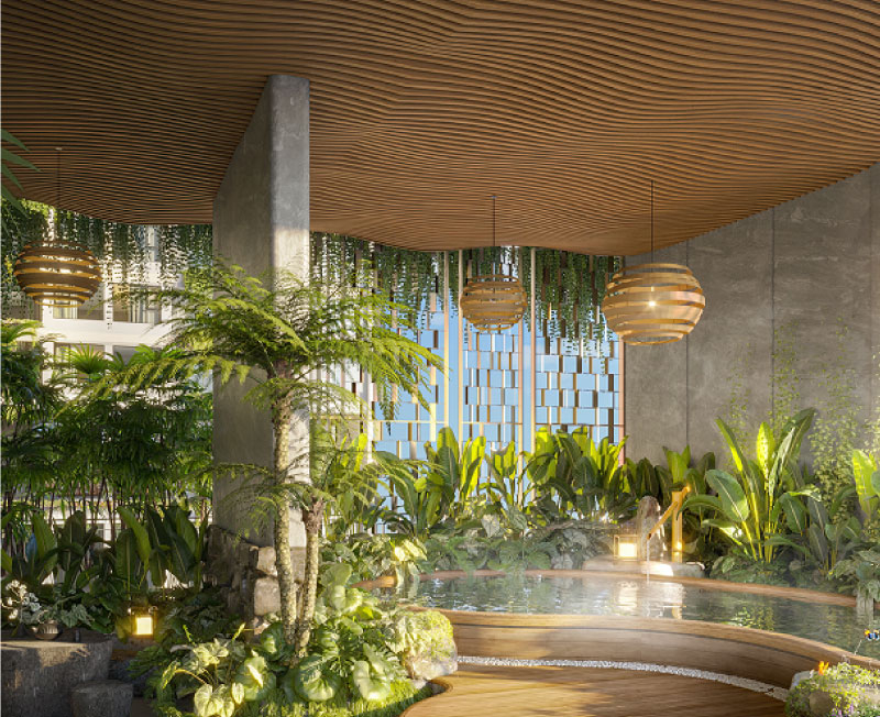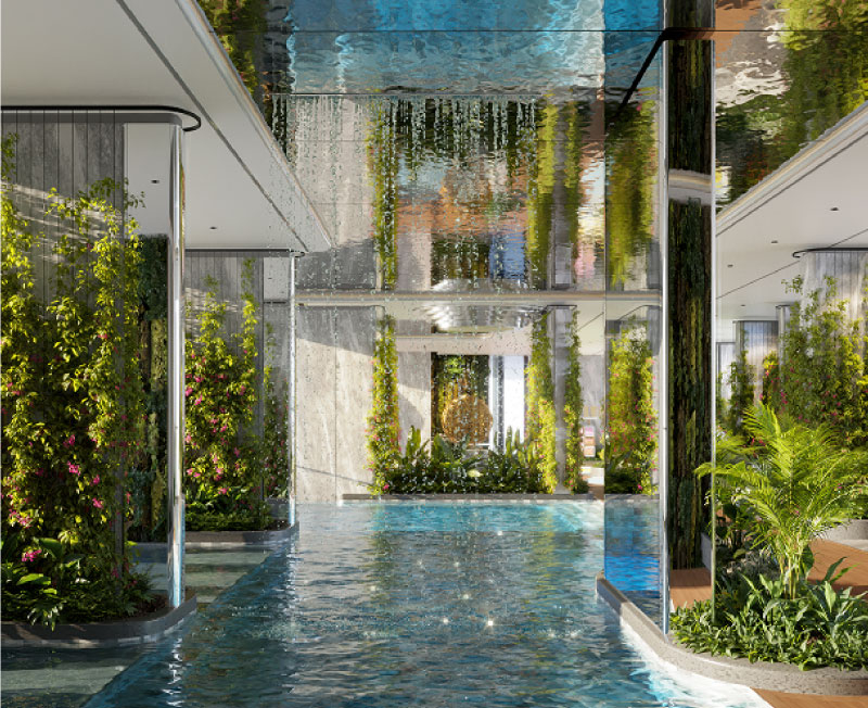 - Hồ bơi tràn bờ trên không: Nơi cư dân có thể ngâm mình trong làn nước mát và ngắm nhìn hoàng hôn rực rỡ.